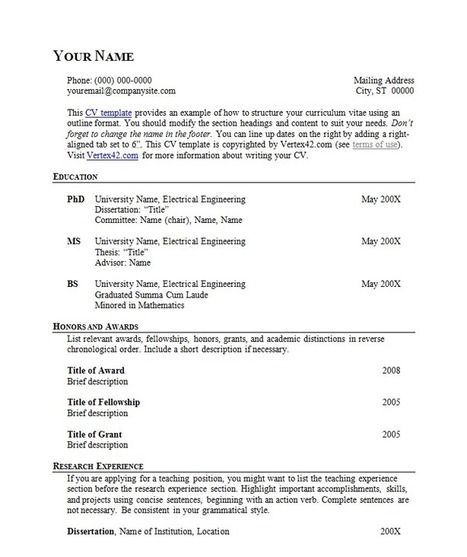 English Cv Sample Word