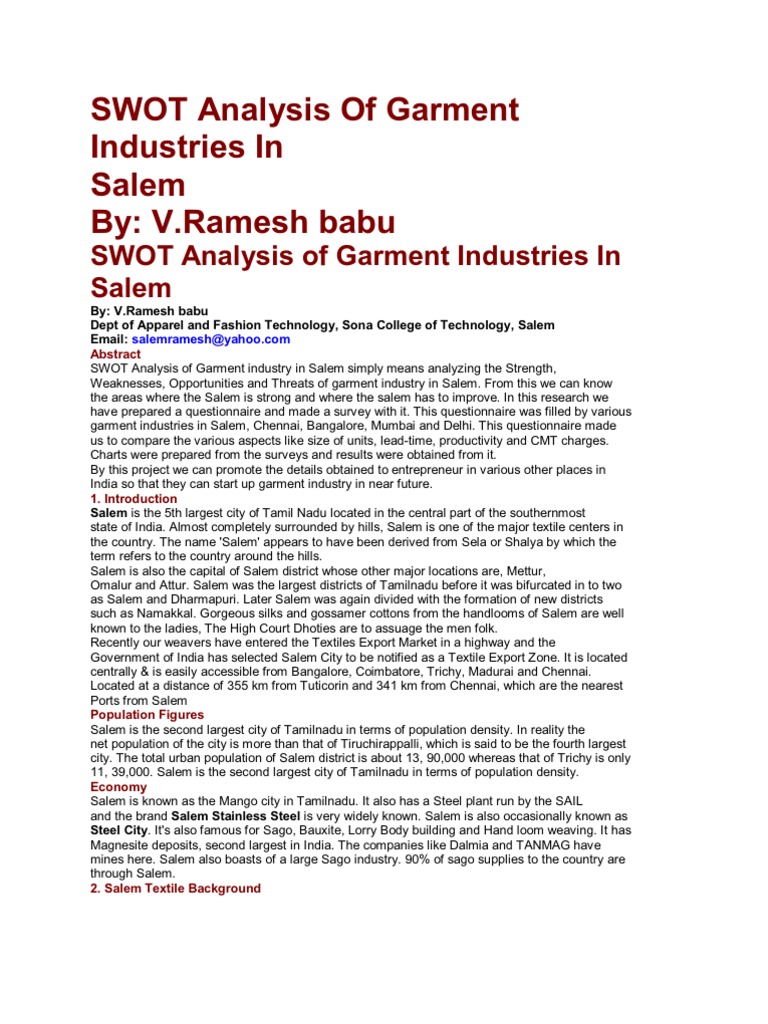 Swot Analysis Of Garment Industries In Loom Weaving